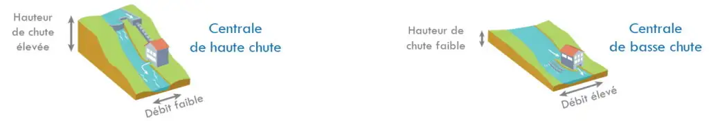 Les petites centrales hydroélectriques fournissent une énergie en continu. Sans retenue ou réservoir, elles sont généralement équipées d’un petit barrage qui ne stocke pas l’eau mais crée un dénivelé. C’est la hauteur de cette chute et le débit du cours d’eau qui définissent la puissance de la centrale en kilowatts (kW).